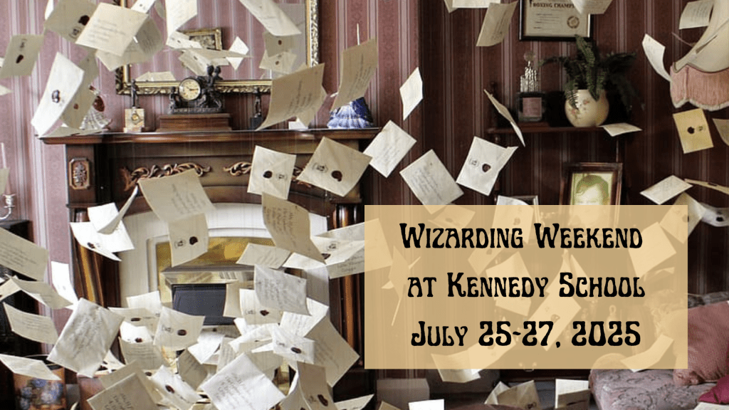 Movies – Each year, Kennedy School runs the Harry Potter movies all weekend long. Look for a schedule on those coming soon for ticket purchases. If you want to spend your whole weekend watching all the movies, you will have a choice of purchasing a Prefect Pass. (We did discuss running different fantastical movies this year, but it was ultimately decided that people look forward to the Harry Potter movies + it enables Kennedy School to give more money to charity.)