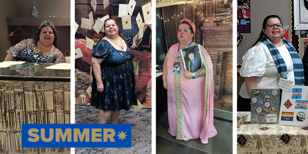 - Tabling at Rose City Comic Com, where we our called Way of the Wand workshop, sell magical goods, have a fun photo op, and usually do a hands-on craft with attendees. Our group often hosts or is part of panels regarding problematic fandoms, witches in pop culture, and how to house fundraising events using fandom.